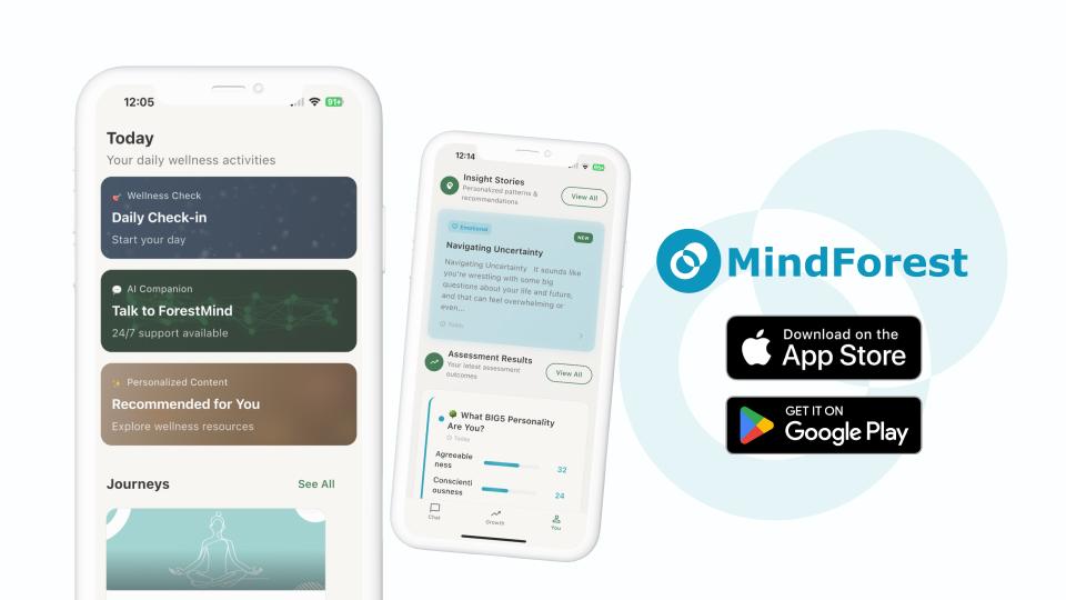Download MindForest and turn these insights into action. Get personalized support from ForestMind AI Coach, track your progress, and unlock your full potential.