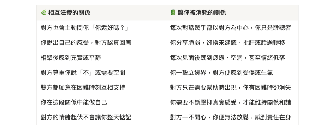 不是每一段關係都值得你傾盡全力。高共情的人需要學習辨別哪些關係是相互滋養的,哪些則長期讓你感到被消耗 。